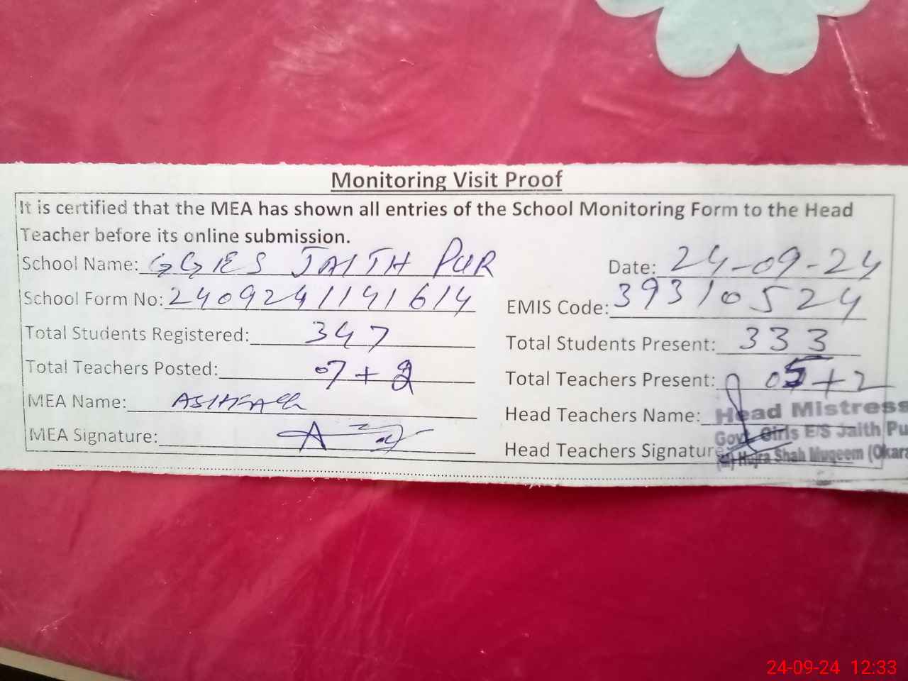 | EMIS Code: 39310524 | Name of School: GGES JAITH PUR | |||