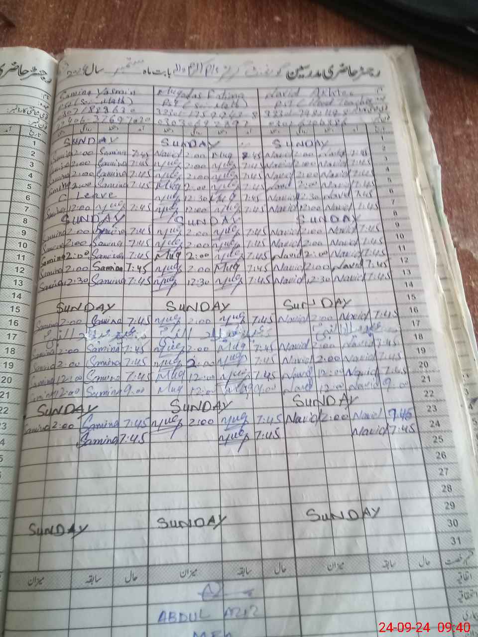 | CNIC | Full Name | Designation | R/C | Absence During Last Calender Month |