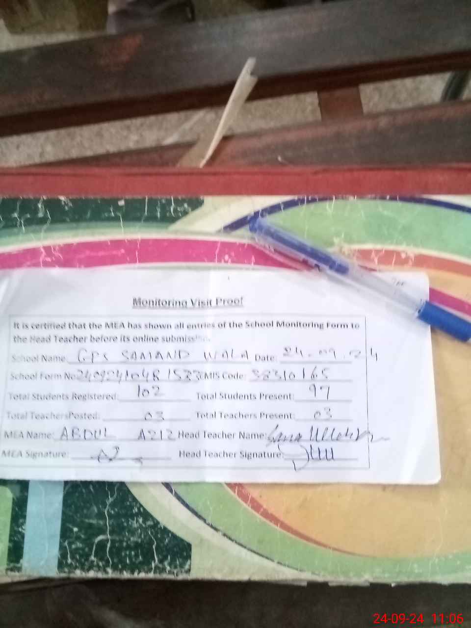 | EMIS Code: 38310165 | Name of School: GPS SAMAND WALA PO KAMAR MUSHANI ISA KHEL | |||