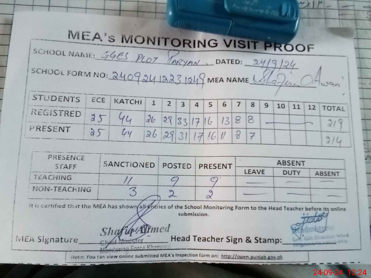 | EMIS Code: 36410107 | Name of School: GGES PLOT PARIAN WALA, SARAI SIDHU | |||