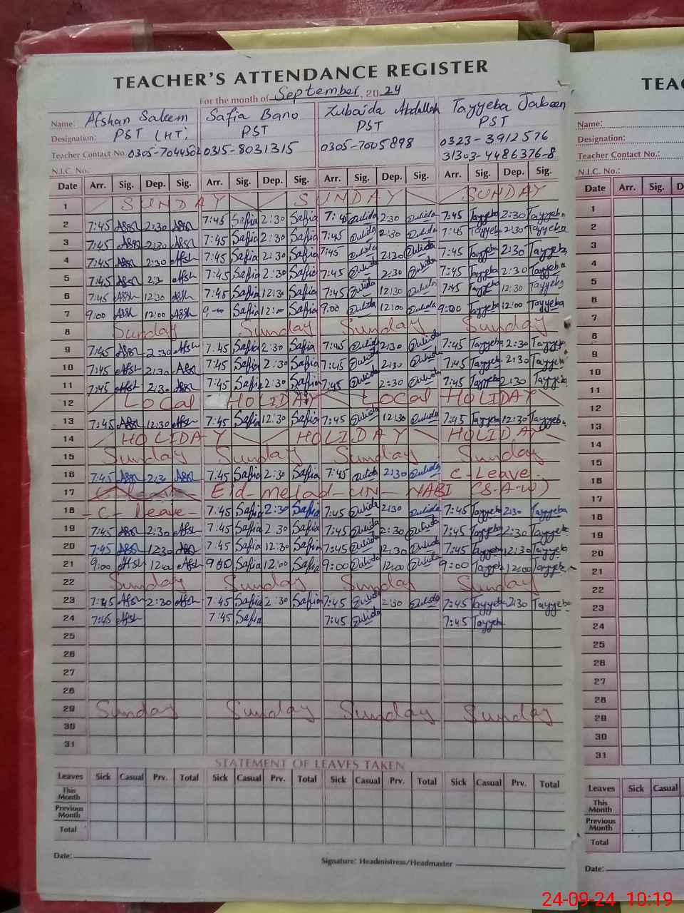 | Name: Af**** Sa**** Designation: (School Headmaster's/Headmistress's) PST Phone/Cell Number: 03**** |