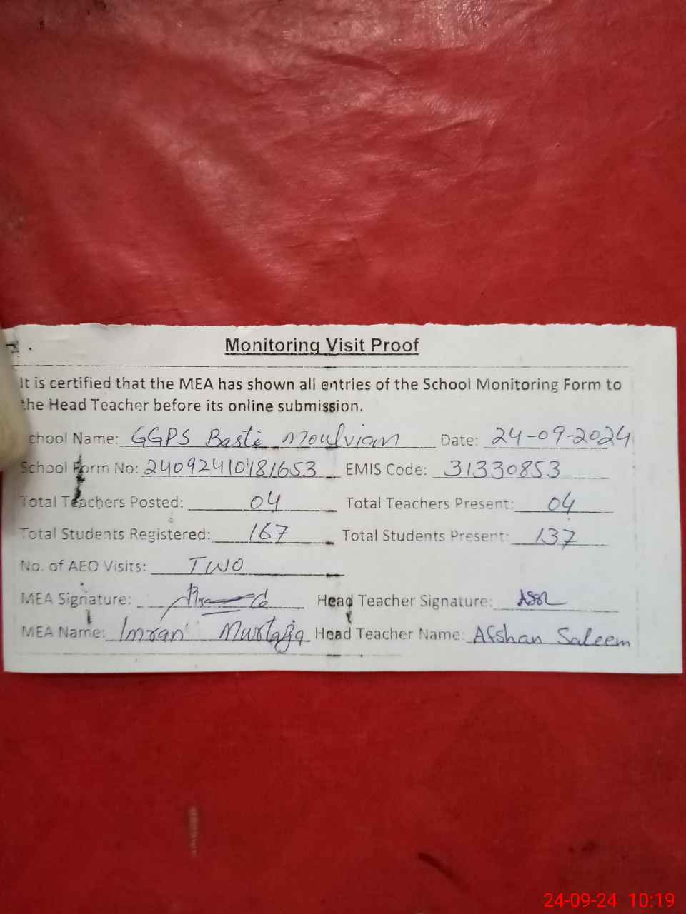 | EMIS Code: 31330853 | Name of School: GGPS BASTI MOULVIAN | |||