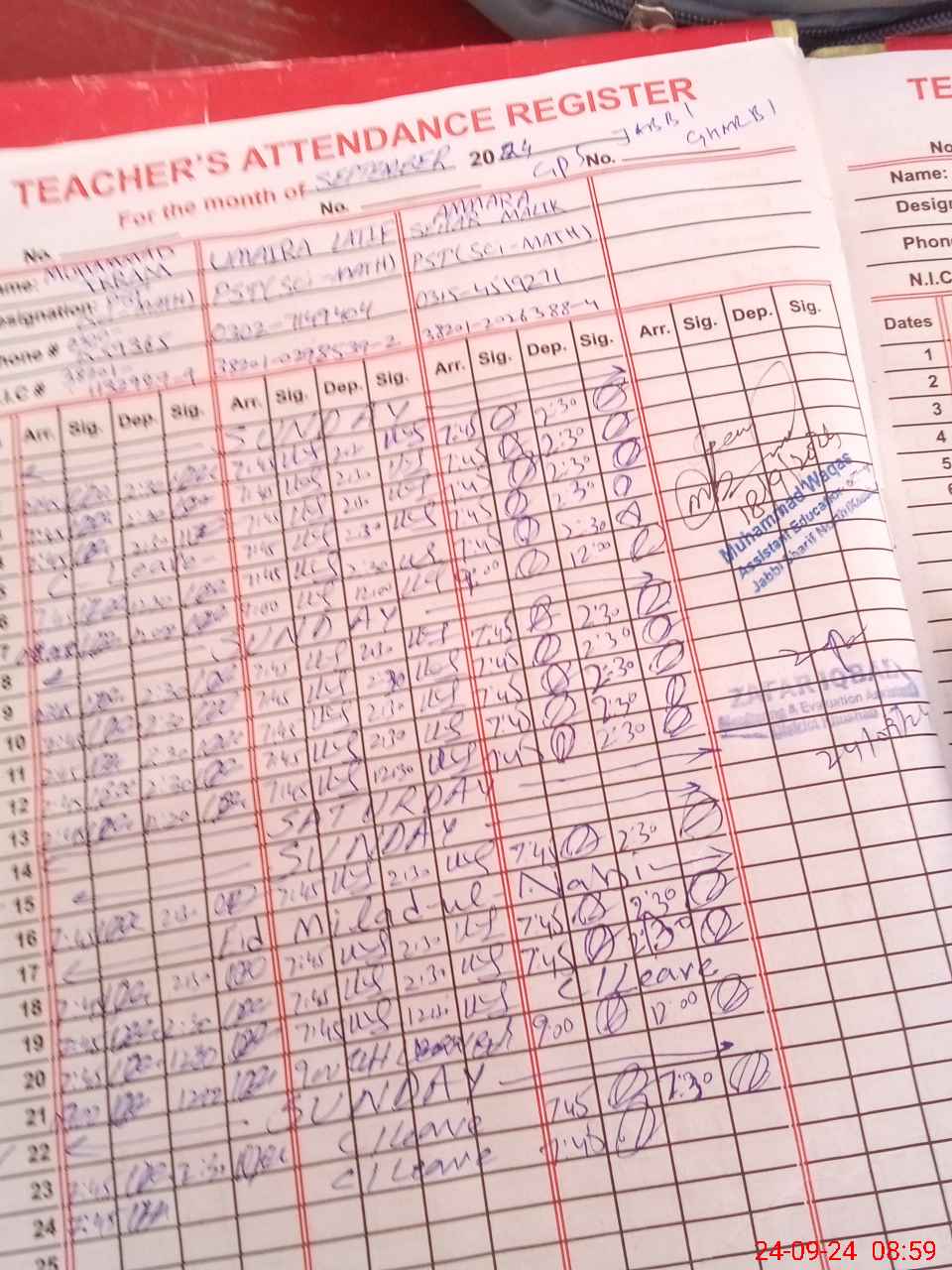| Name: Mu**** Ik**** Designation: (School Headmaster's/Headmistress's) Ese Sci Math Phone/Cell Number: 03**** |