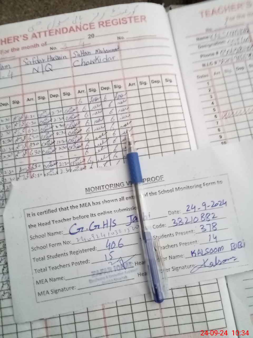 | Attendance Register | Head Teacher | MEA with School | Visit Proof |