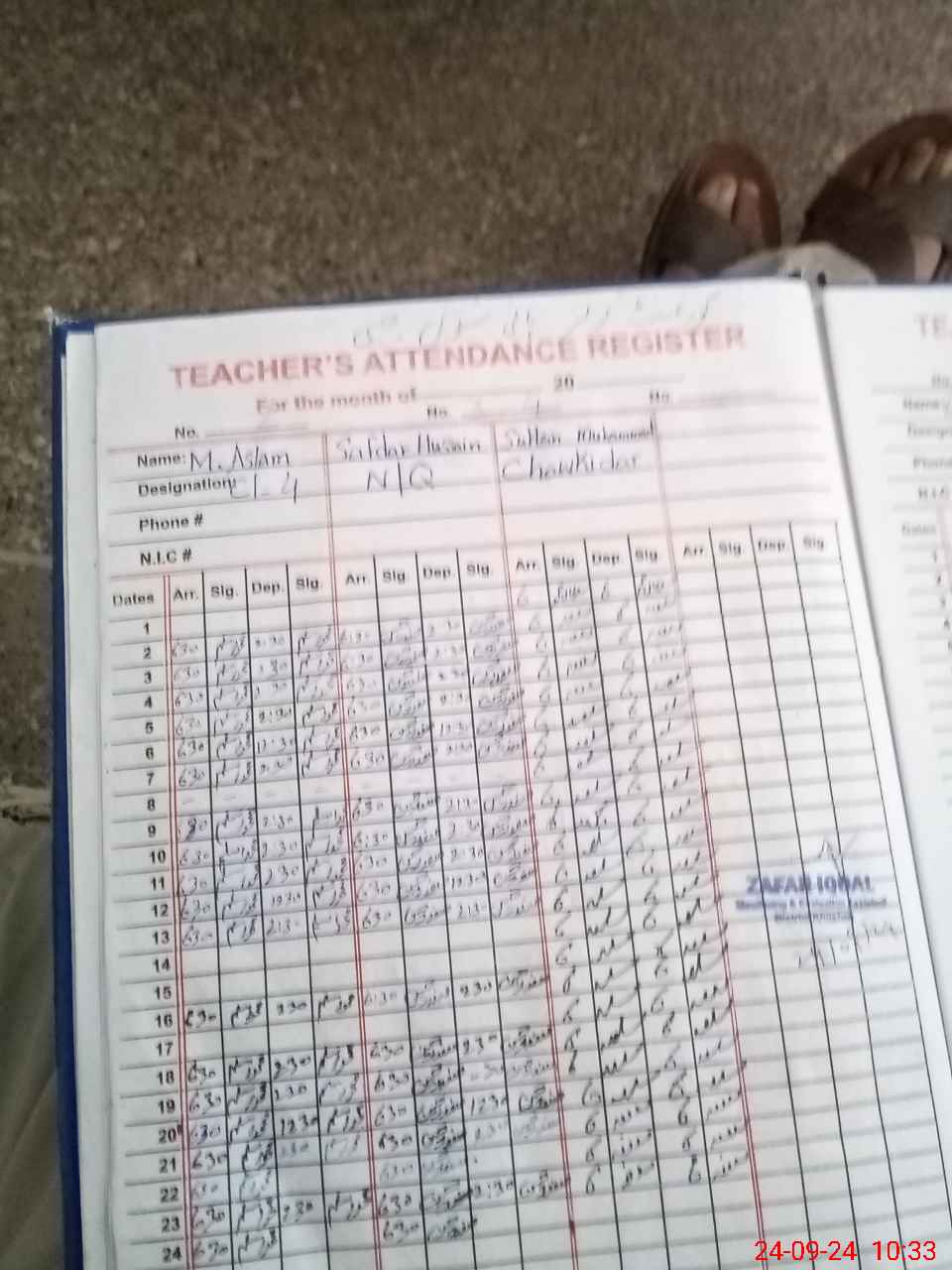 | CNIC | Full Name | Designation | R/C | Absence during last cal. month |