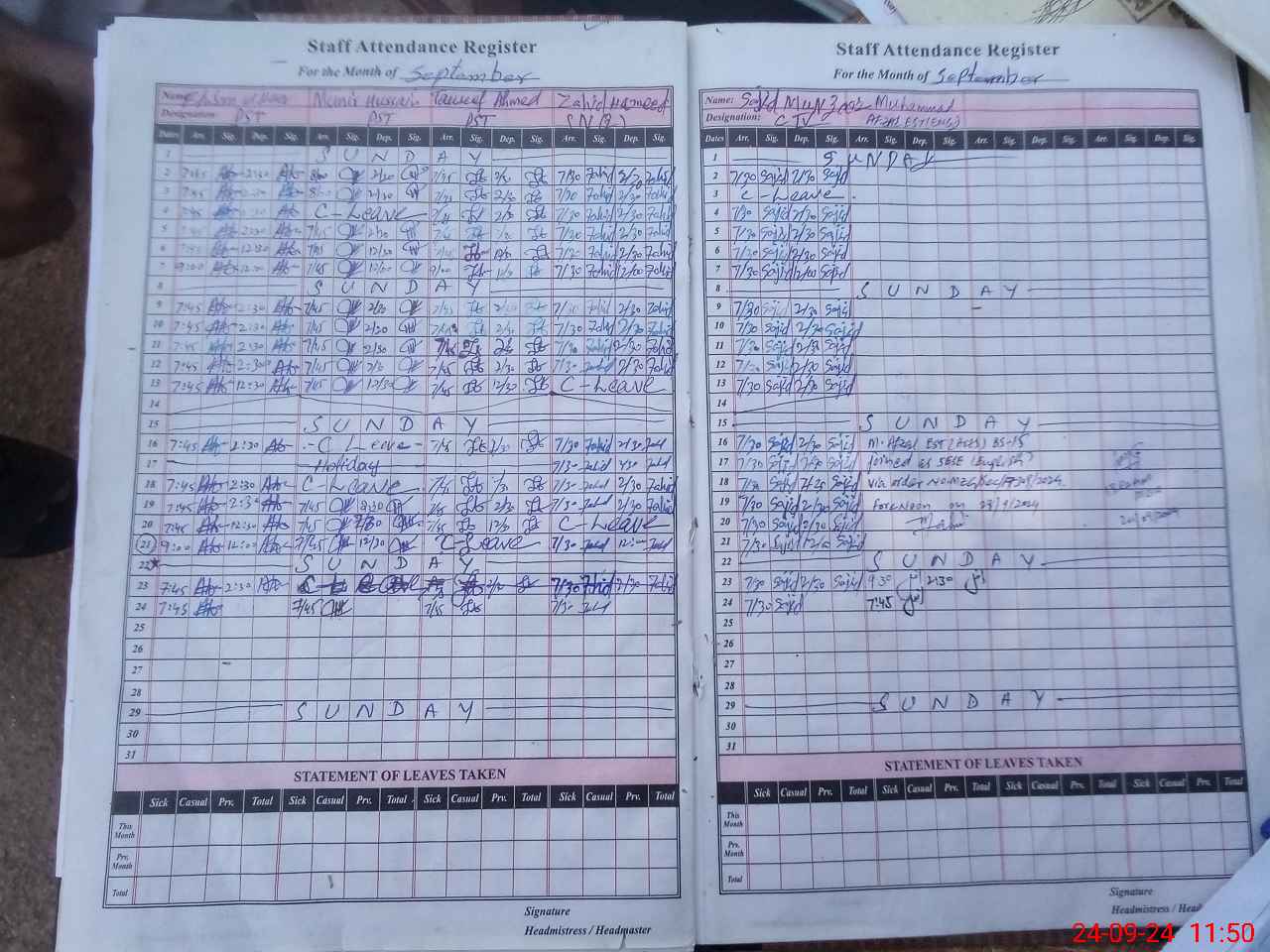 | Leave | Duty | Absent | Maternity | Medical | Ex- Pak |