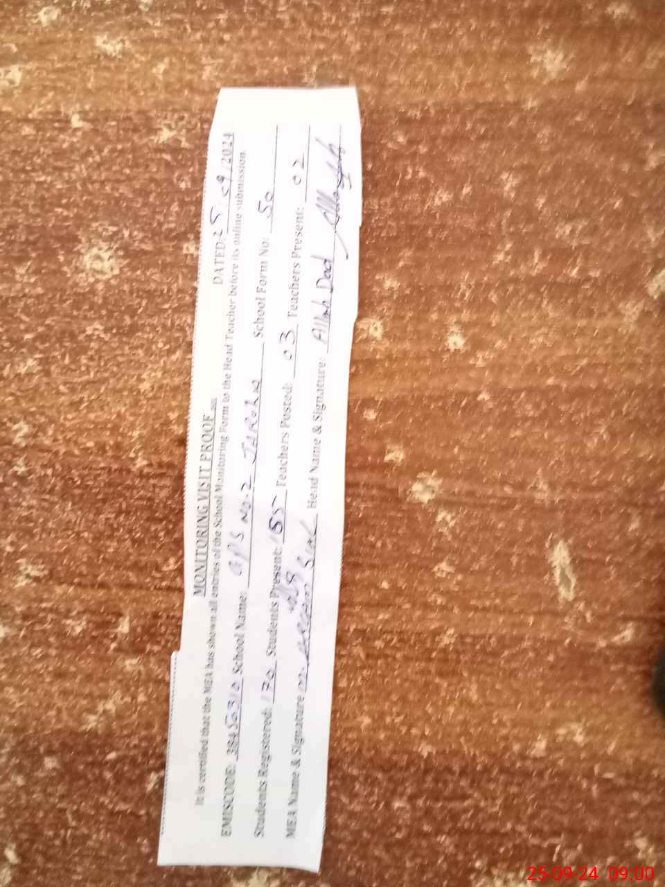 | Attendance Register | Head Teacher | MEA with School | Visit Proof |