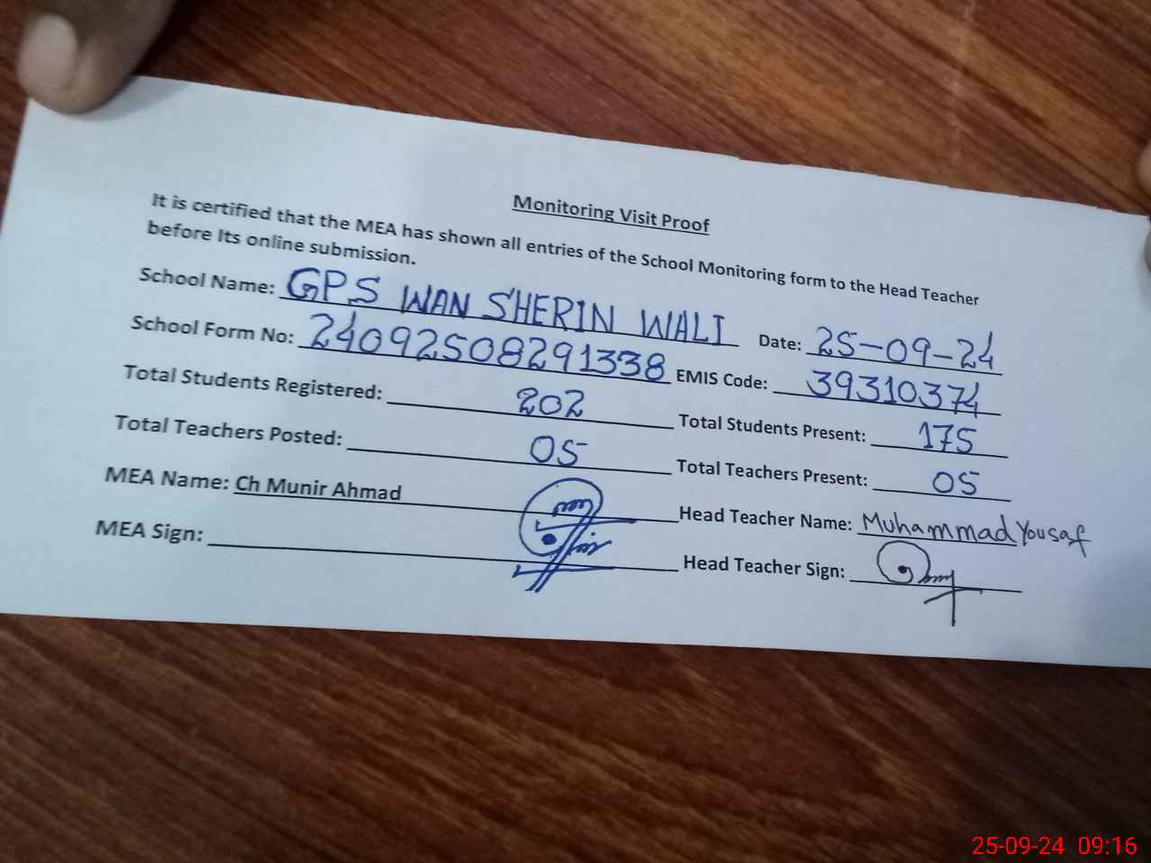 | EMIS Code: 39310374 | Name of School: GPS WAN SHERIN WALI | |||