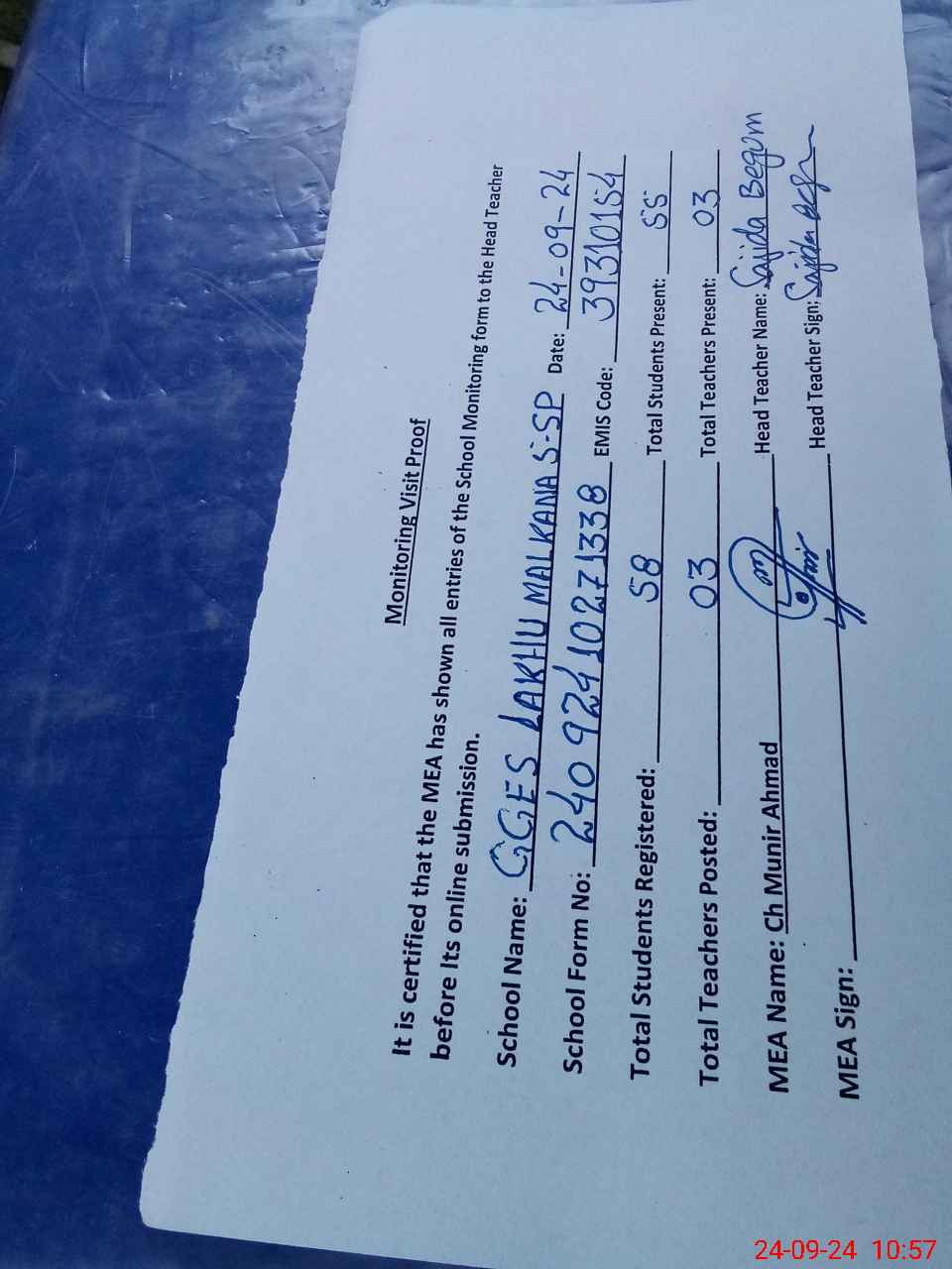 | Certified that this School was Inspected by the Undersigned MEA/DMO Today and the Information Stated Above is as Per Record. | |||||