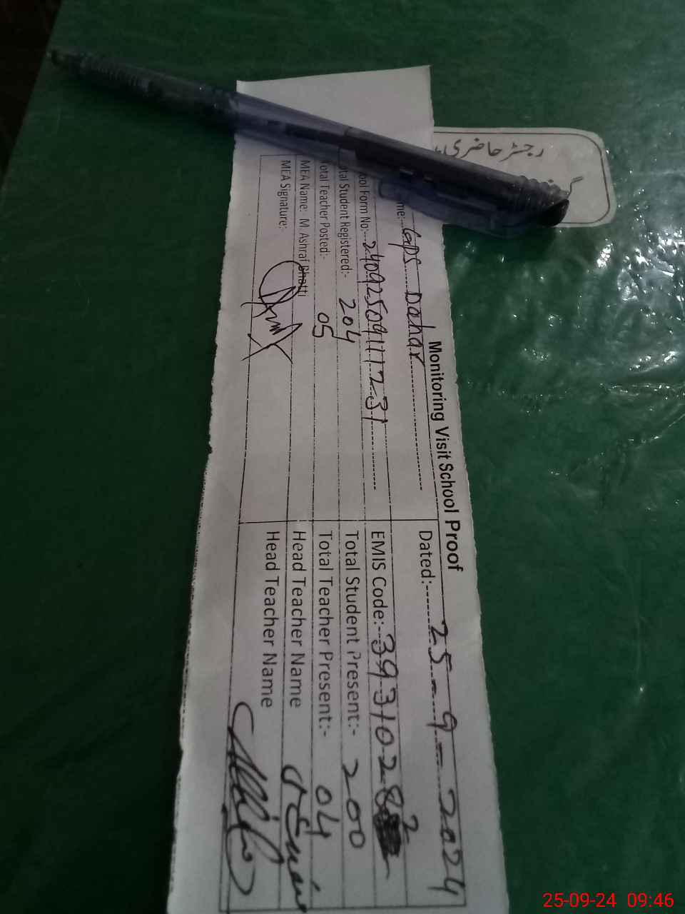 | EMIS Code: 39310282 | Name of School: GPS DAHAR | |||
