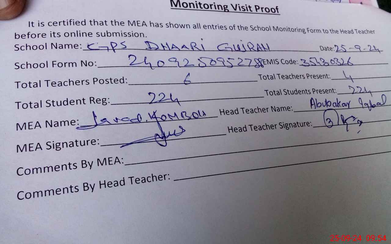 | EMIS Code: 35430326 | Name of School: GPS DHAARI GUJRAN | |||