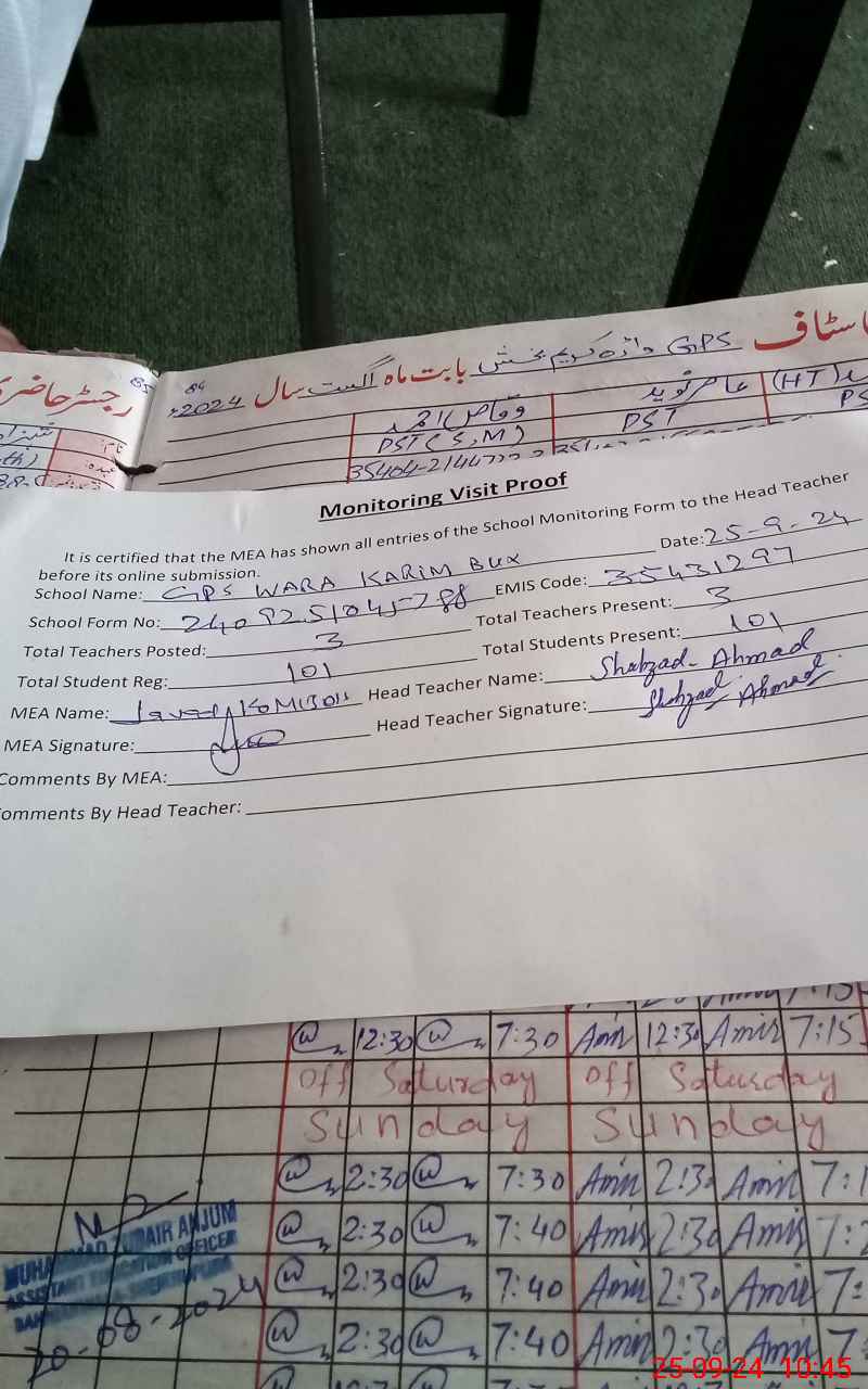 | Name: SH**** AH**** Designation: (School Headmaster's/Headmistress's) PST Phone/Cell Number: 03**** |