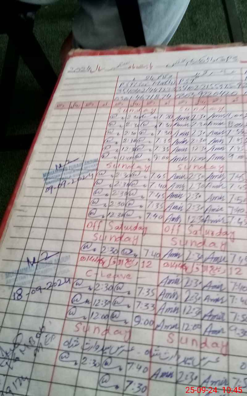 | CNIC | Full Name | Designation | R/C | Absence During Last Calender Month |