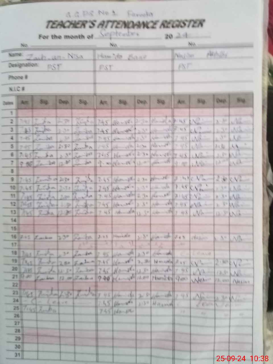 | Name: ZA**** UNNI**** Designation: (School Headmaster's/Headmistress's) PST Phone/Cell Number: 03**** |