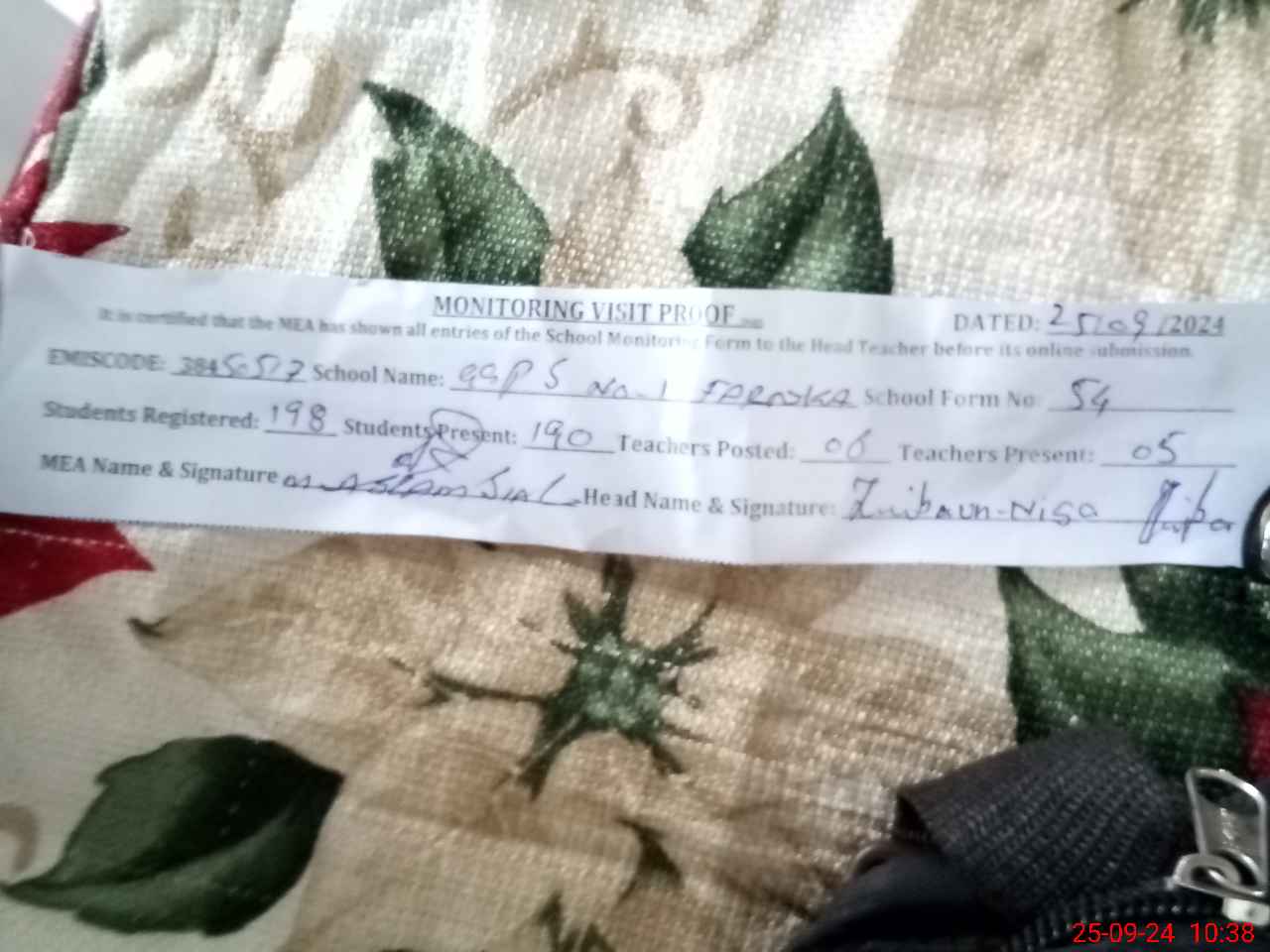 | Certified that this School was Inspected by the Undersigned MEA/DMO Today and the Information Stated Above is as Per Record. | |||||