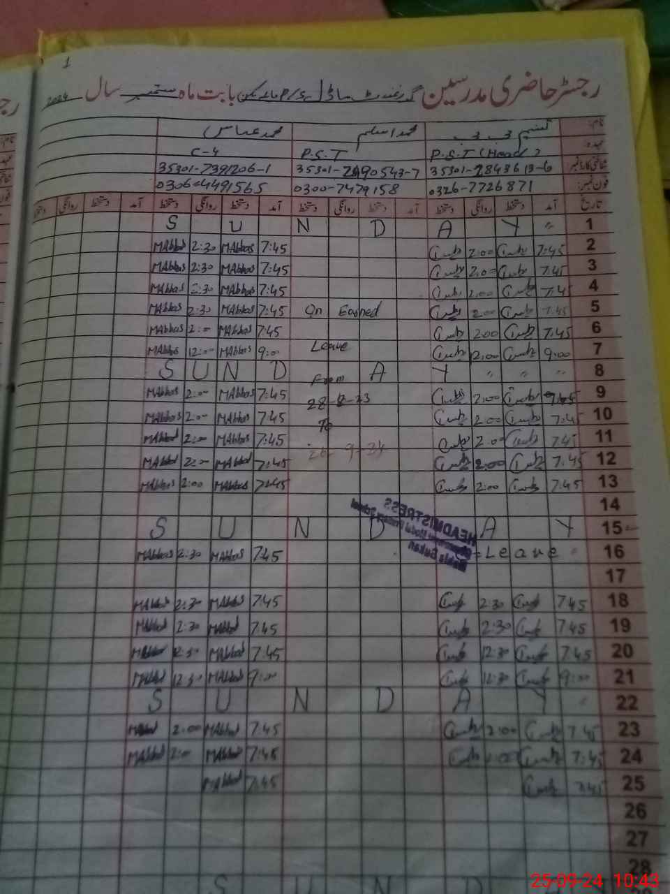 | Name: Ta**** Bi**** Designation: (School Headmaster's/Headmistress's) PST Phone/Cell Number: 03**** |