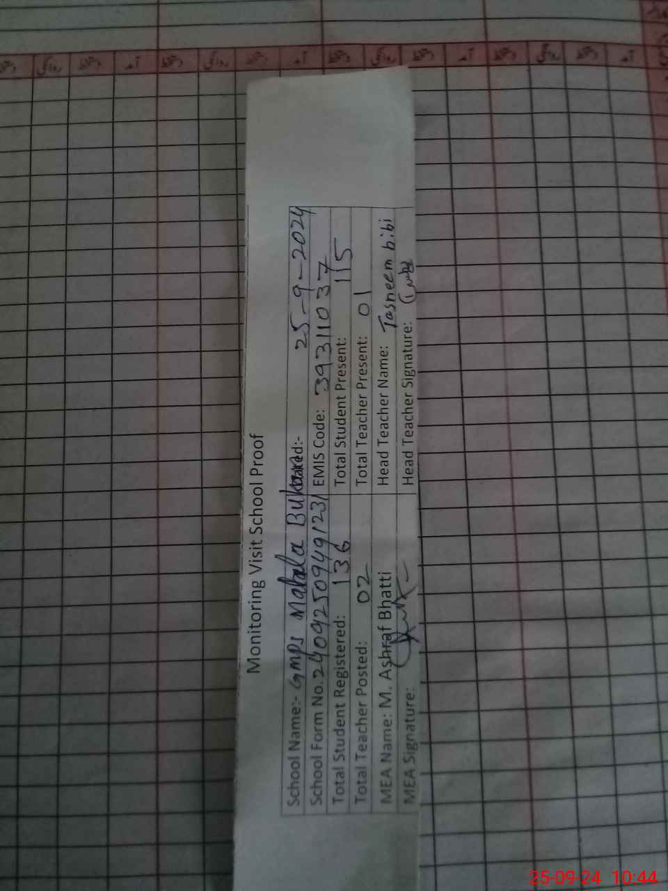 | EMIS Code: 39311037 | Name of School: GMPS MAHLA BUKKAN | |||