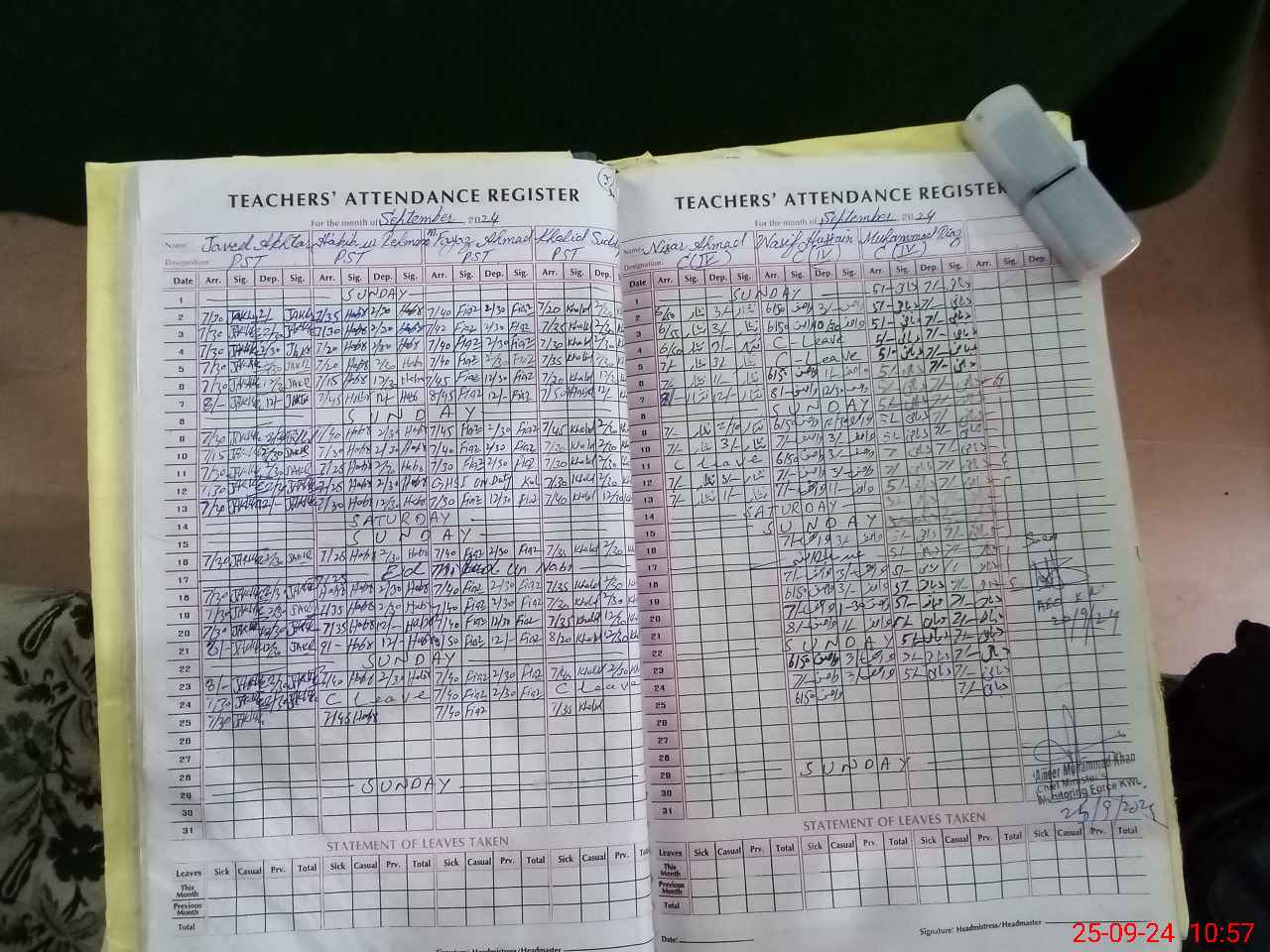 | CNIC | Full Name | Designation | R/C | Absence During Last Calender Month |