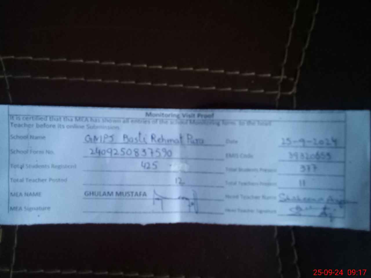 | EMIS Code: 39320653 | Name of School: GMPS BASTI REHMAT PURA | |||