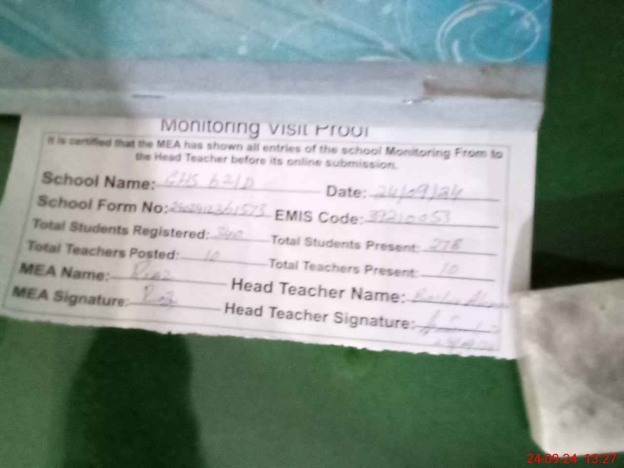| EMIS Code: 39210053 | Name of School: GHS CHAK NO. 62/D | |||