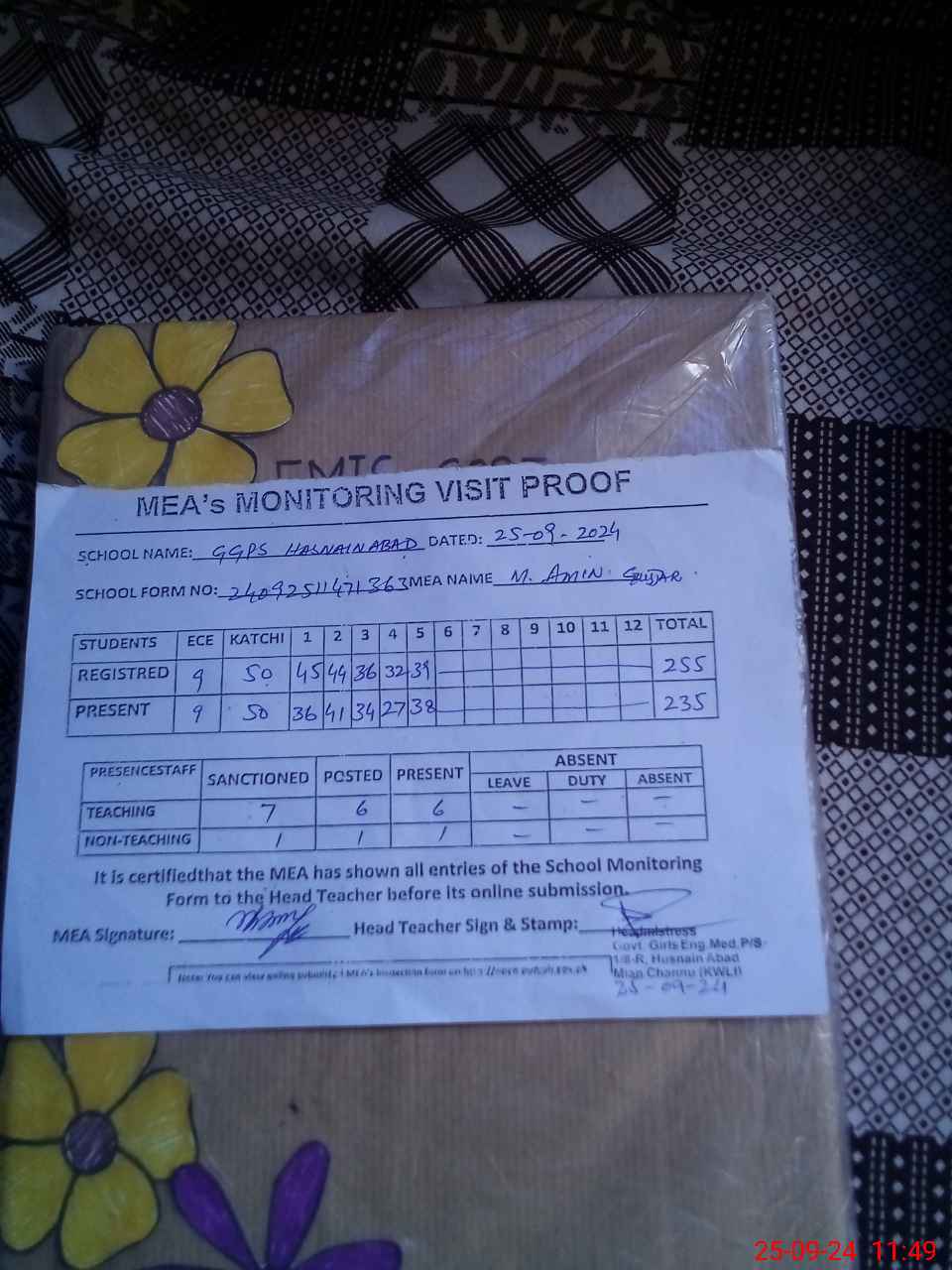 | EMIS Code: 36430353 | Name of School: GGPS HASNAIN ABAD MIAN CHANNU | |||