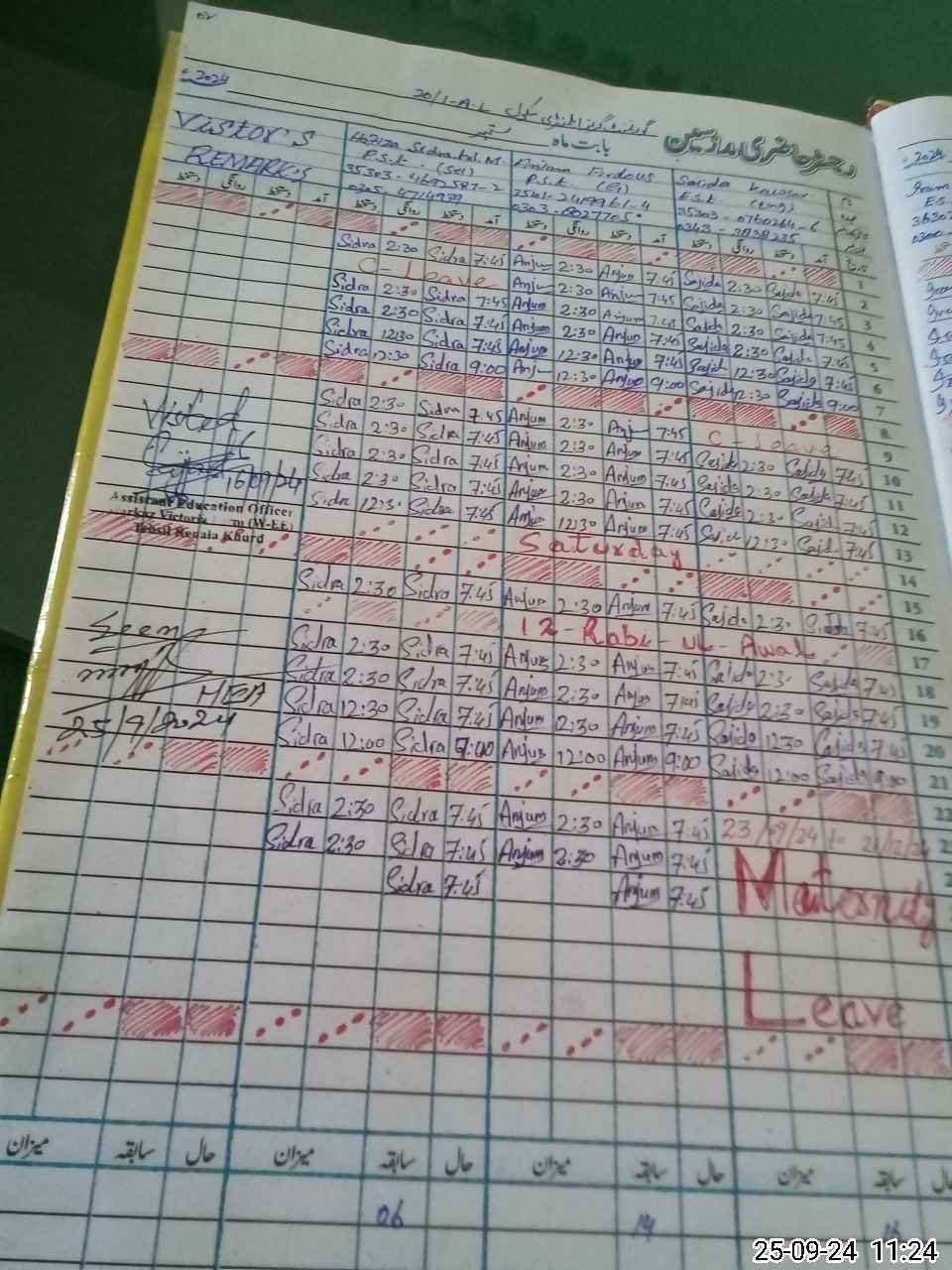 | Leave | Duty | Absent | Maternity | Medical | Ex- Pak |