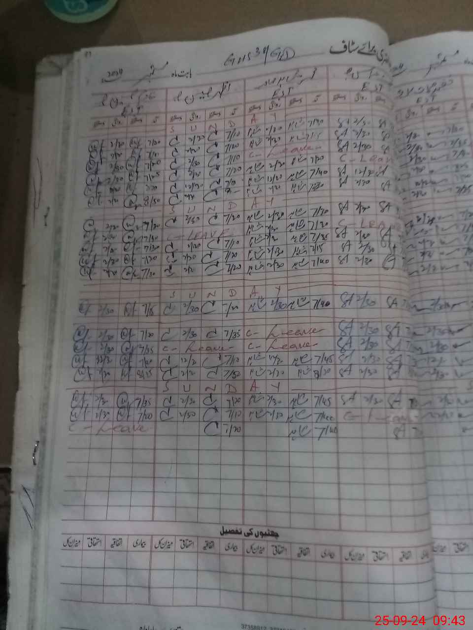 | CNIC | Full Name | Designation | R/C | Absence During Last Calender Month |