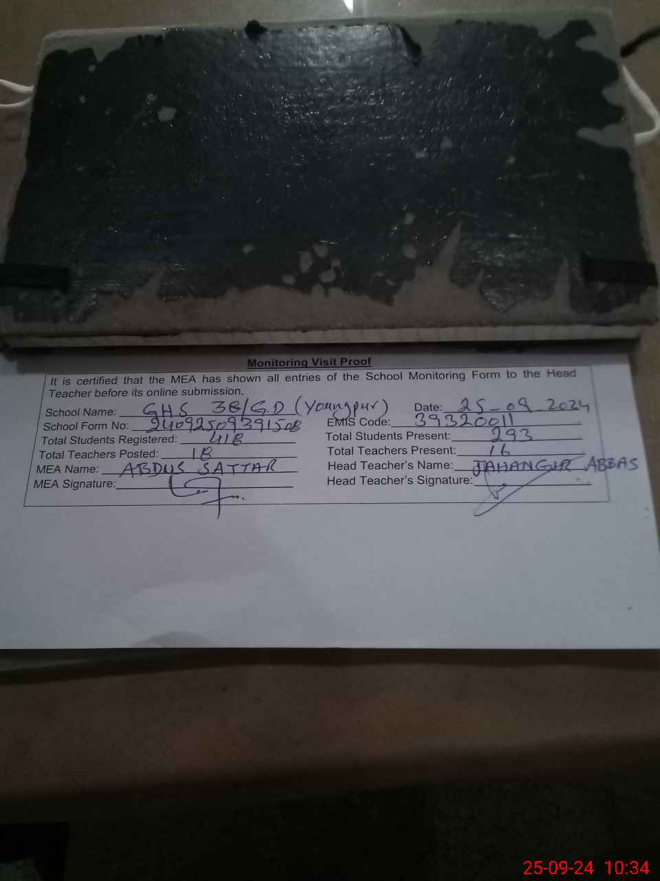 | Certified that this School was Inspected by the Undersigned MEA/DMO Today and the Information Stated Above is as Per Record. | |||||