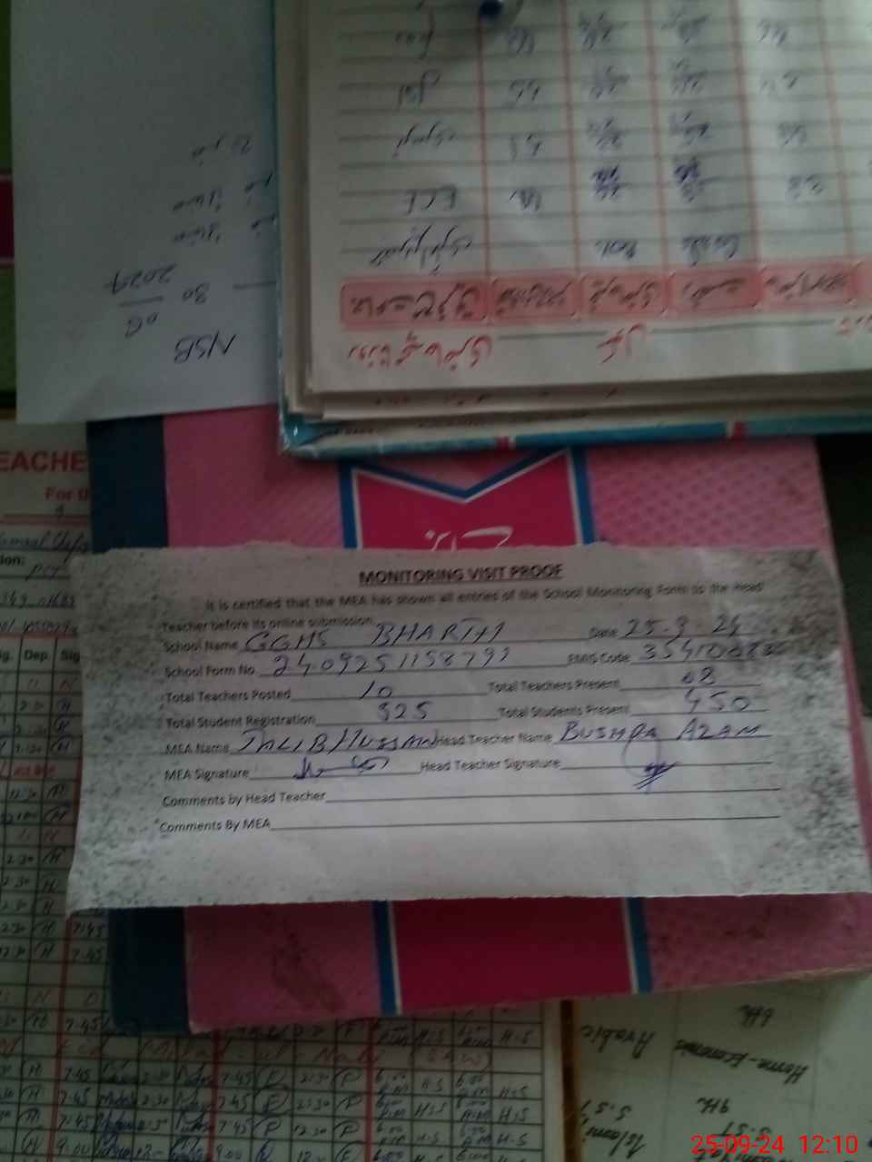 | Attendance Register | Head Teacher | MEA with School | Visit Proof |