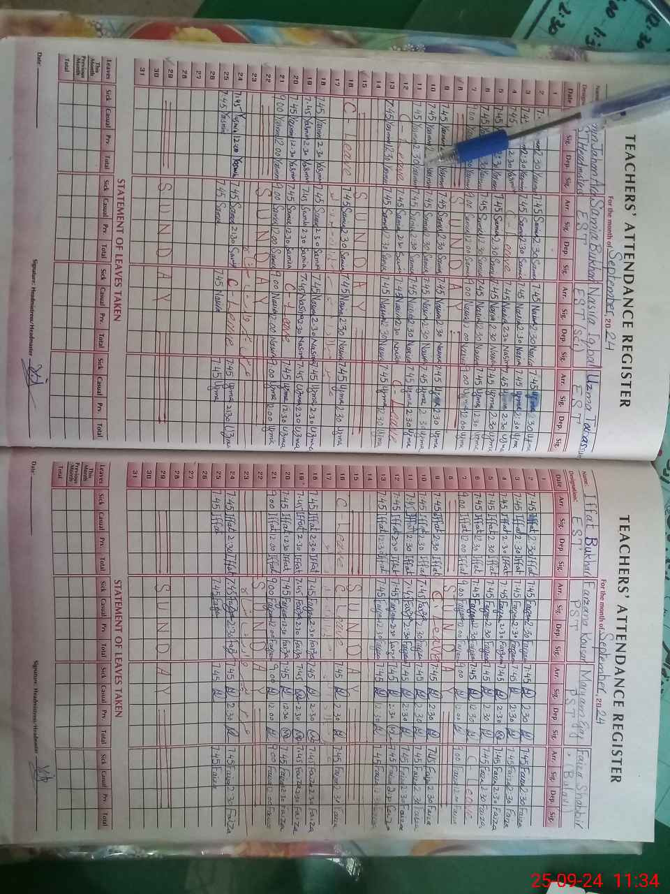 | Leave | Duty | Absent | Maternity | Medical | Ex- Pak |