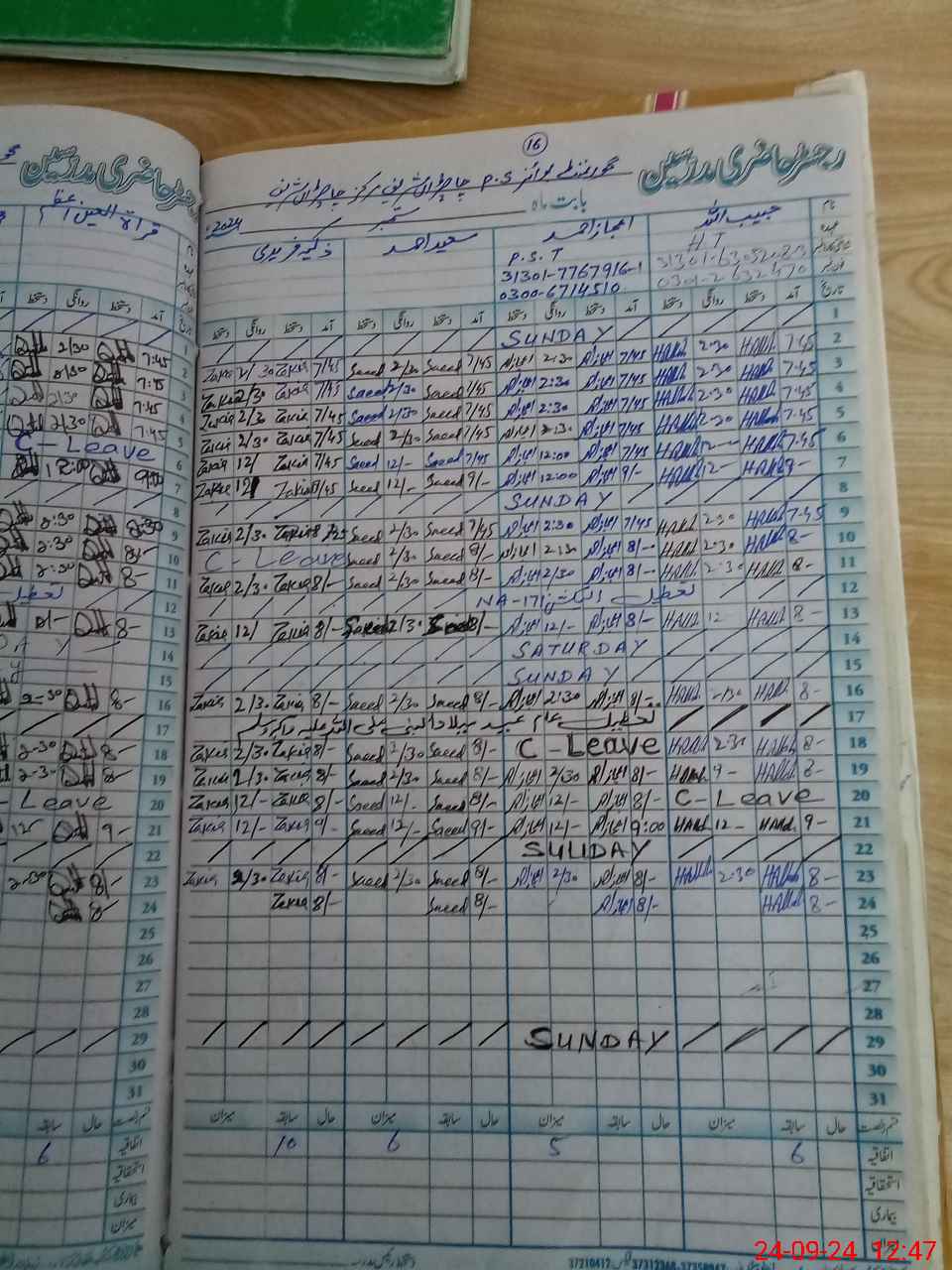 | CNIC | Full Name | Designation | R/C | Absence During Last Calender Month |