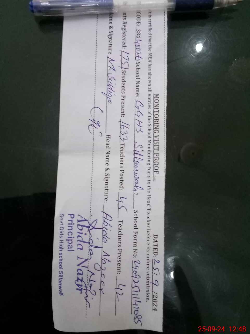 | EMIS Code: 38440026 | Name of School: GGHS SILLANWALI | |||