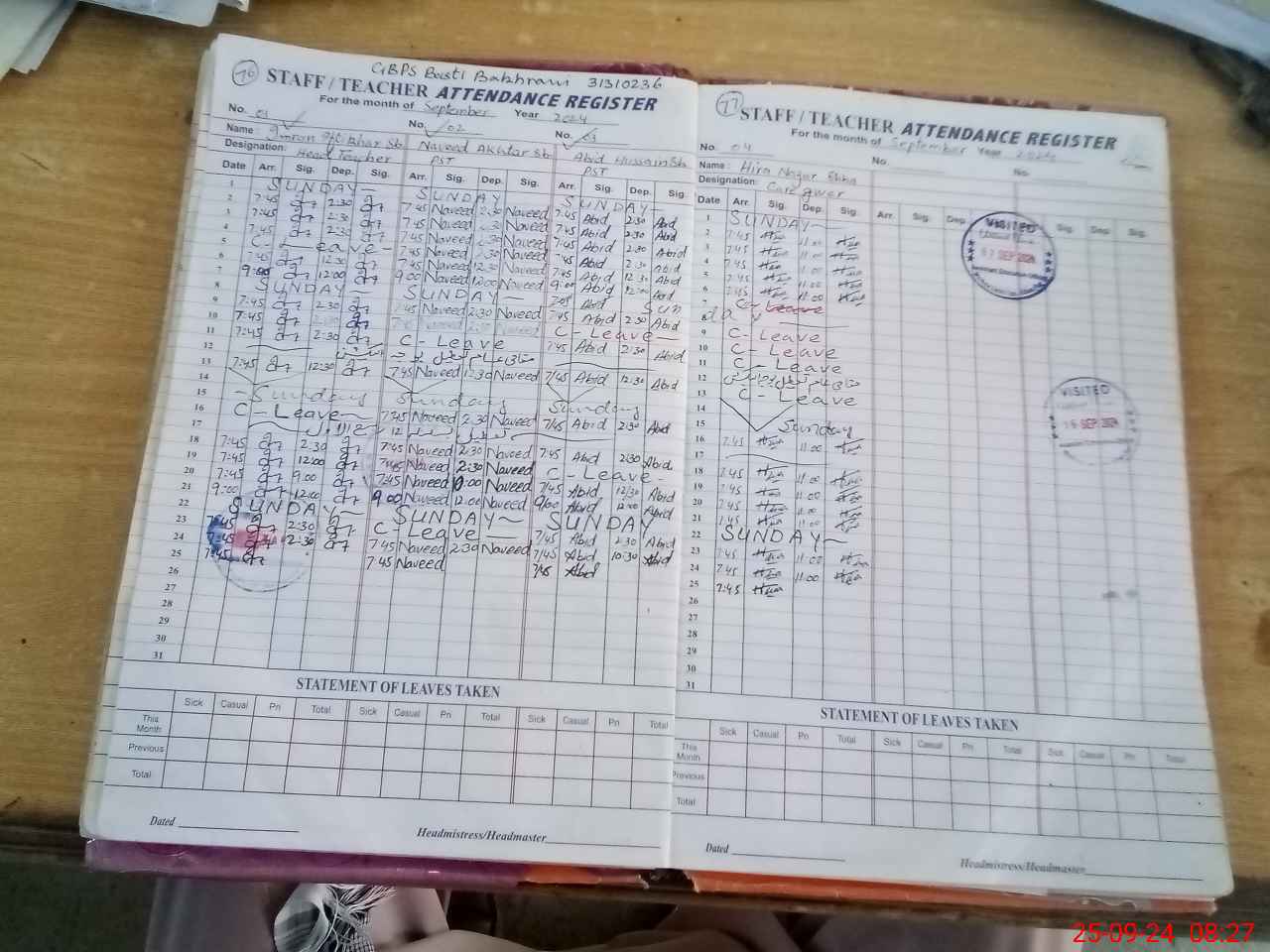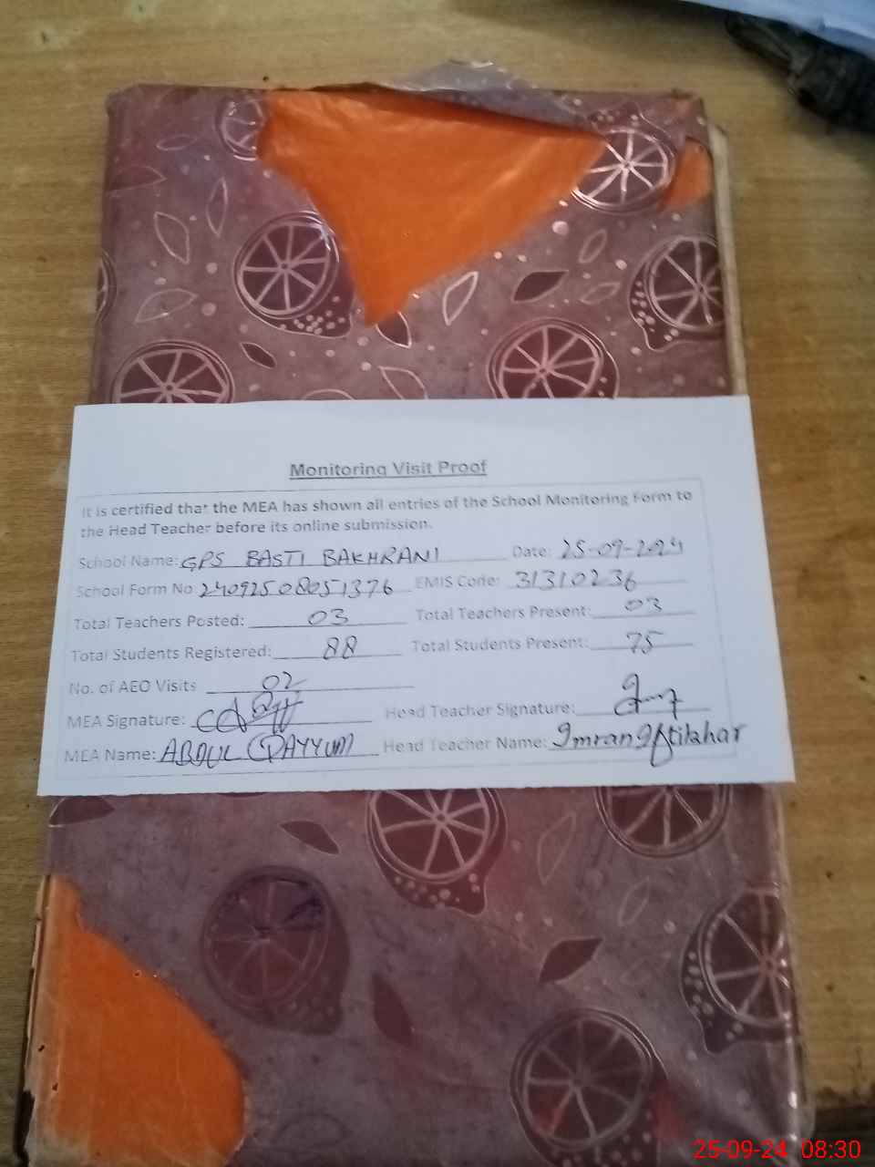 | Attendance Register | Head Teacher | MEA with School | Visit Proof |