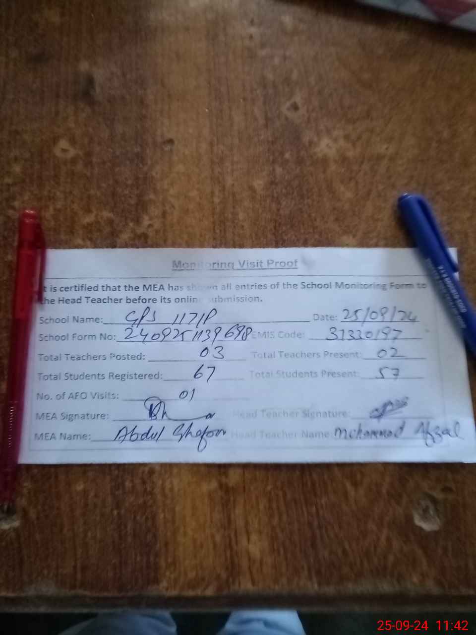 | Name: M.AF**** Designation: (School Headmaster's/Headmistress's) PST Phone/Cell Number: 03**** |