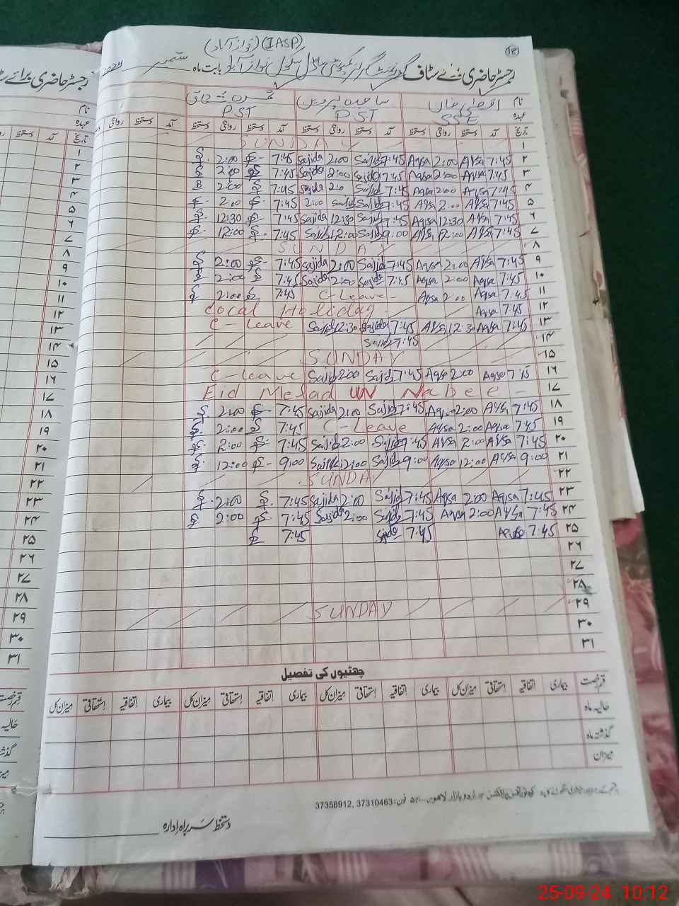 | CNIC | Full Name | Designation | R/C | Absence During Last Calender Month |