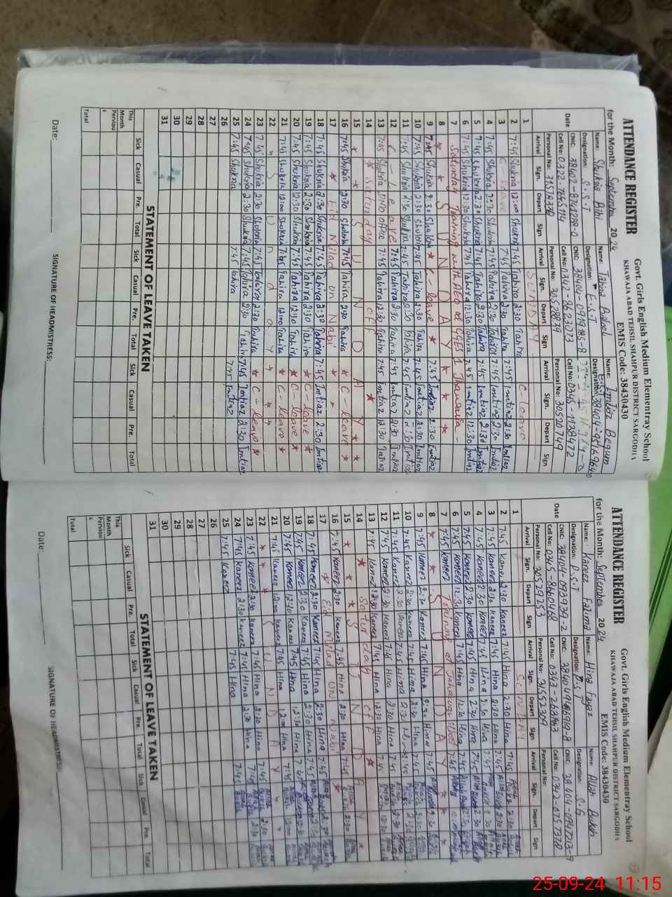 | Name: TA**** BA**** Designation: (School Headmaster's/Headmistress's) EST Phone/Cell Number: 03**** |