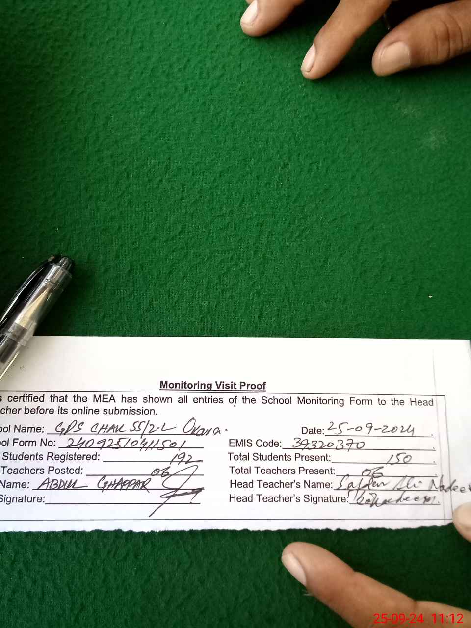 | Certified that this School was Inspected by the Undersigned MEA/DMO Today and the Information Stated Above is as Per Record. | |||||