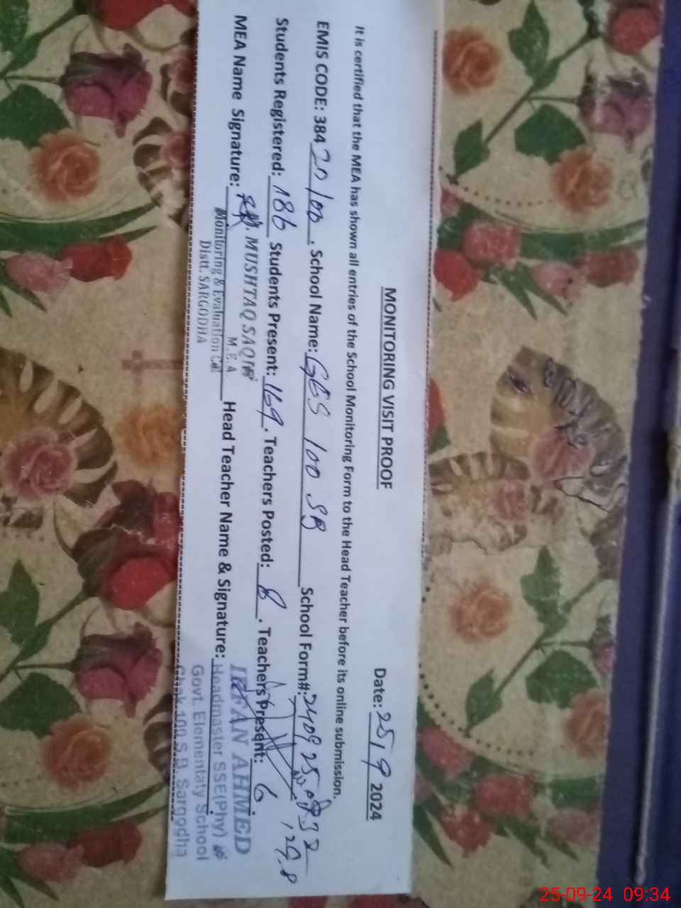 | Name: IR**** AH**** Designation: (School Headmaster's/Headmistress's) SSE Phone/Cell Number: 03**** |