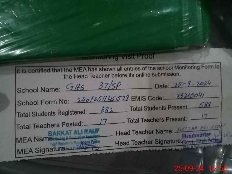 | EMIS Code: 39210041 | Name of School: GHS CHAK 37 SP | |||
