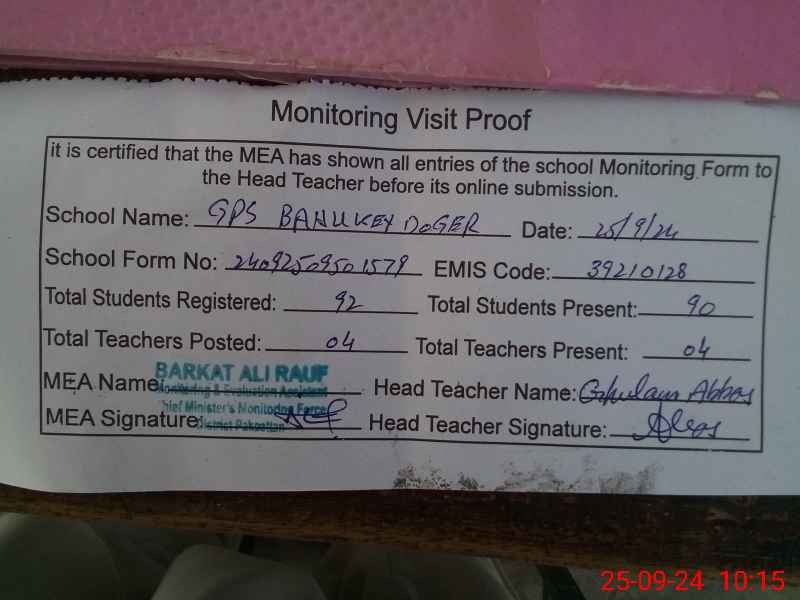 | EMIS Code: 39210128 | Name of School: GPS BAHU KEY DOGAR | |||