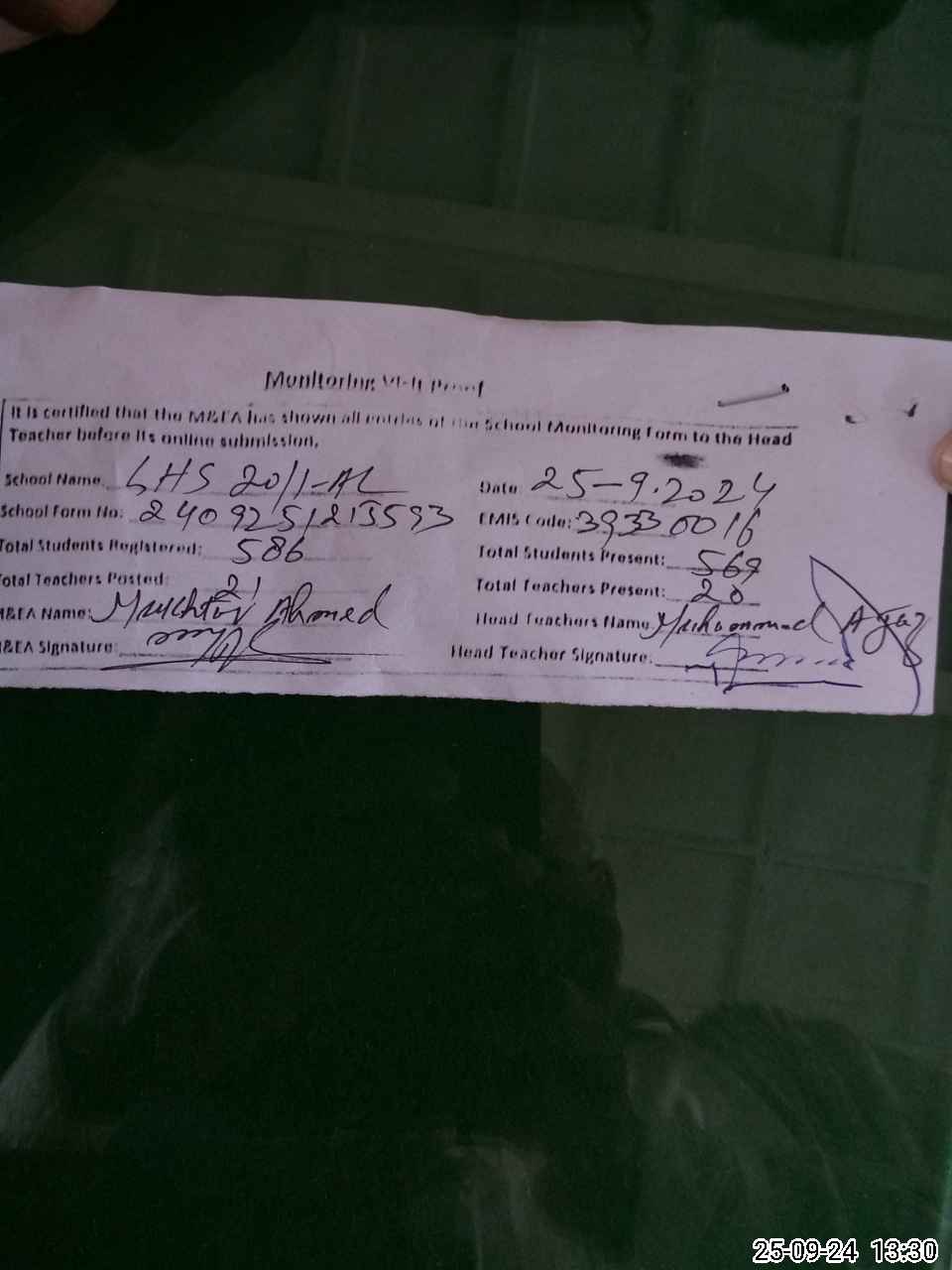 | EMIS Code: 39330016 | Name of School: GHS CHAK NO 20-1AL | |||