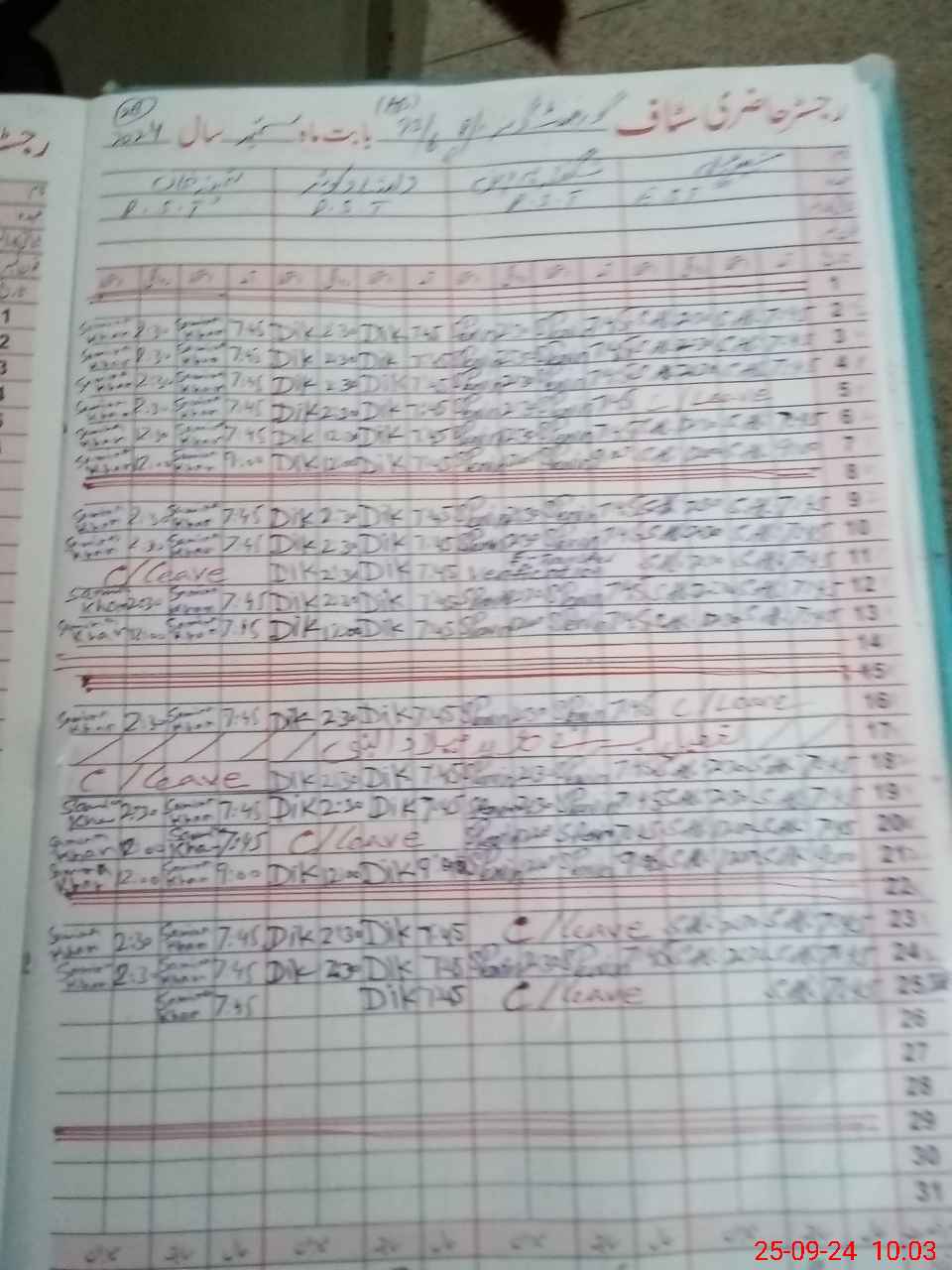 | 31**** | Sh**** Pa**** | 1 | 0 | 0 | 0 | 0 | 0 | 0 | 0 | 0 | 0 | Absent (Un-Authorized) | |