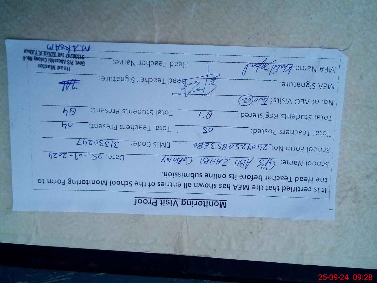 | EMIS Code: 31330247 | Name of School: GPS ABU ZAHBI COLONY NO. 4 | |||