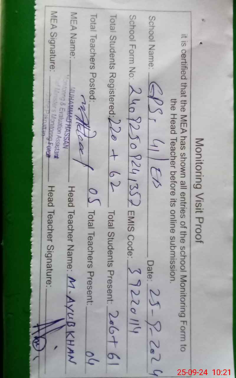 | EMIS Code: 39220114 | Name of School: GPS CHAK NO. 41 EB | |||