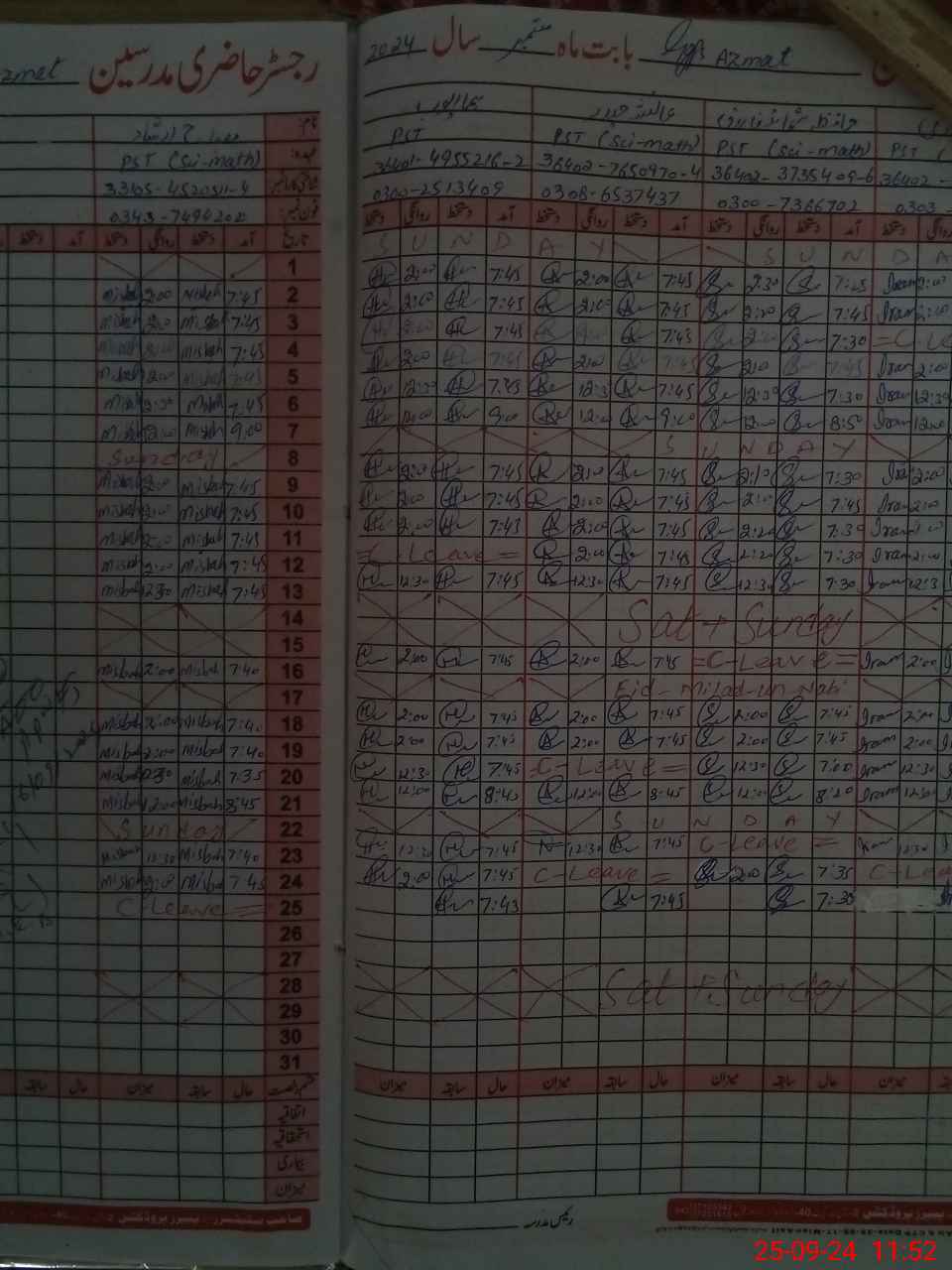 | Name: IR**** SH**** Designation: (School Headmaster's/Headmistress's) PST Phone/Cell Number: 03**** |
