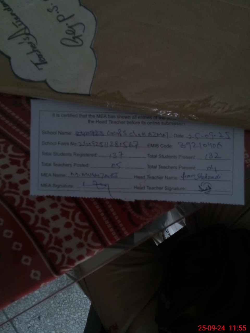 | Certified that this School was Inspected by the Undersigned MEA/DMO Today and the Information Stated Above is as Per Record. | |||||