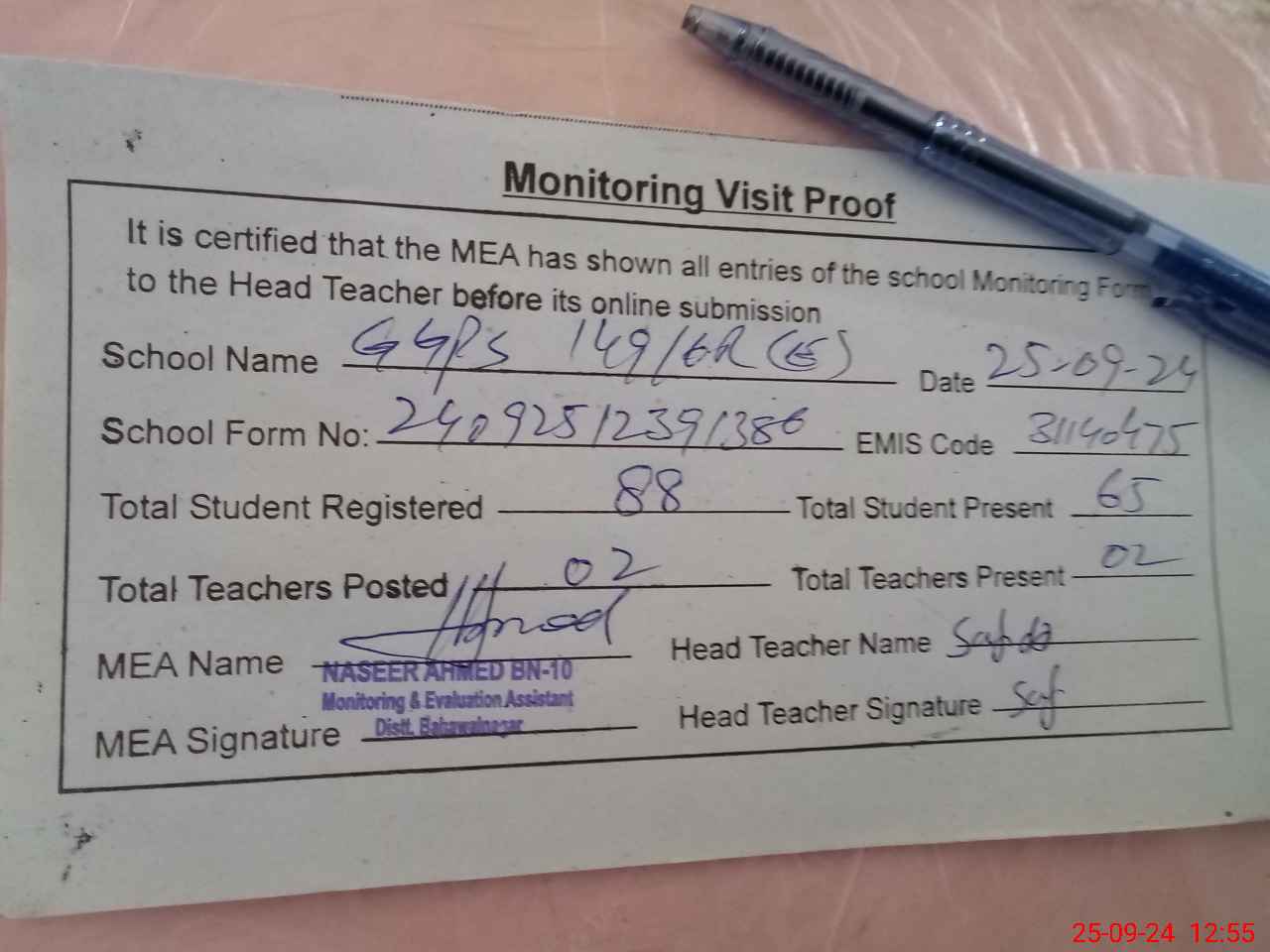 | Certified that this School was Inspected by the Undersigned MEA/DMO Today and the Information Stated Above is as Per Record. | |||||