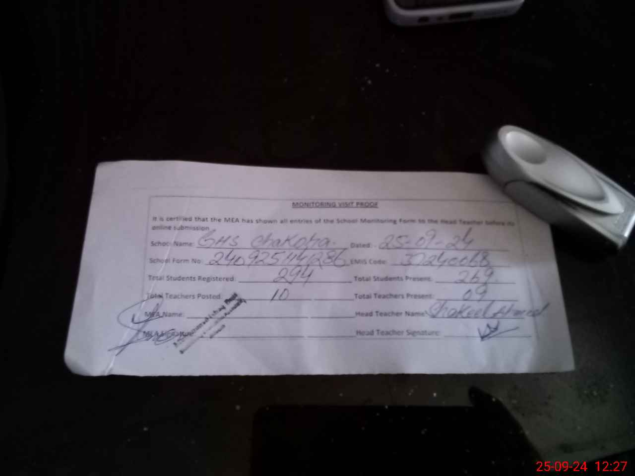 | Remarks (Use Separate Page if Required): Arshad Mehmmod chowkidar on temp duty gghs toor teh and district jhelum vide ltr no 2477 dm mf 24 dated 24 jul 2024 | |||||