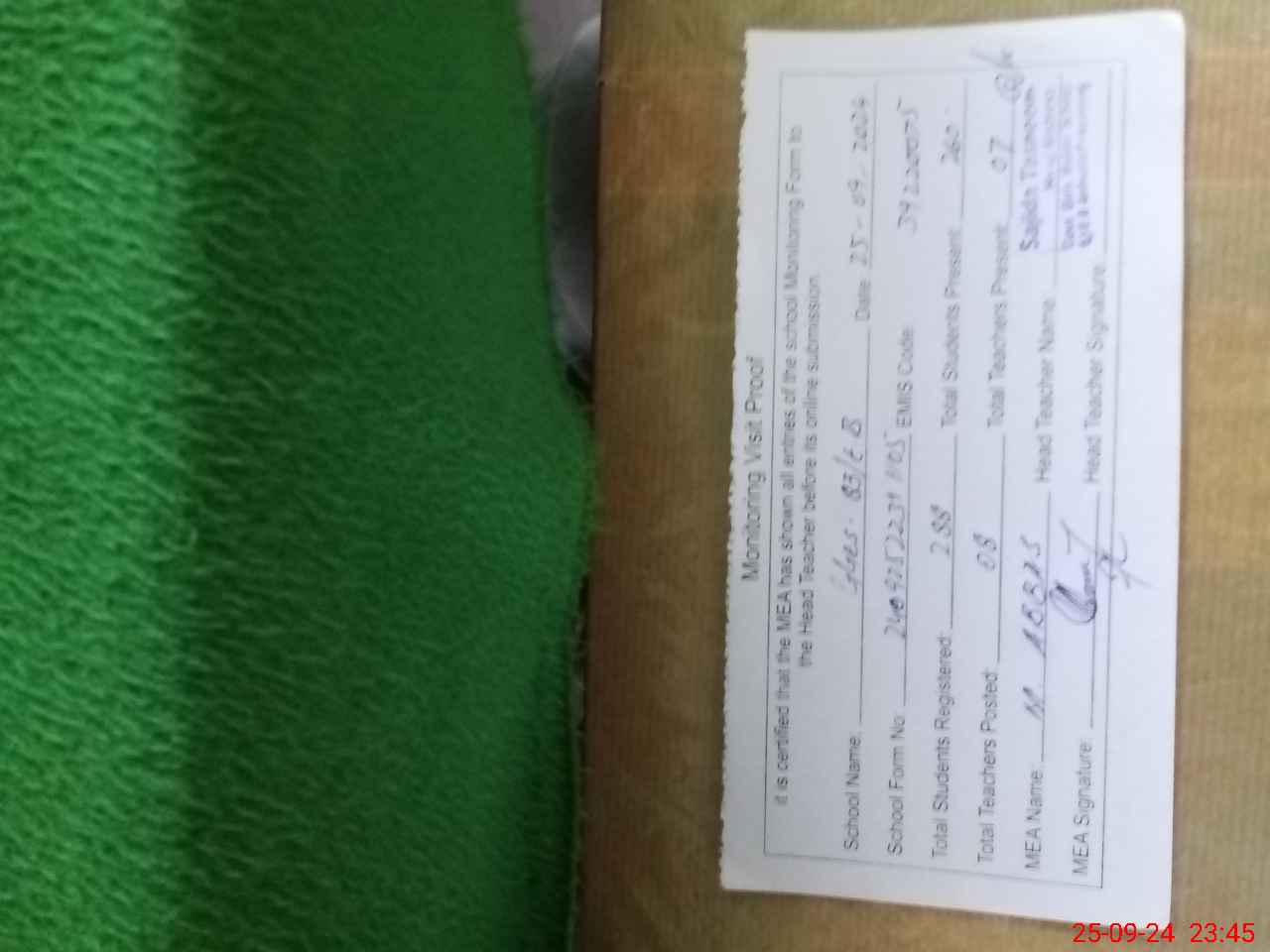 | Attendance Register | Head Teacher | MEA with School | Visit Proof |
