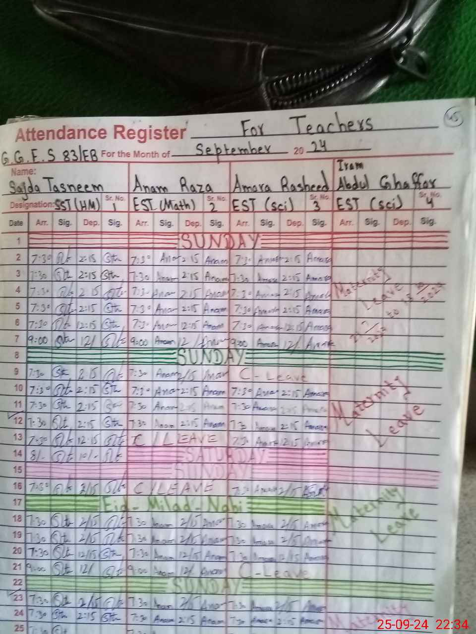 | 36**** | Ir**** Ab**** Gh**** | Regular | 30 | 0 | 0 | 30 | 0 | 0 | 0 | 0 | 0 | Maternity | |